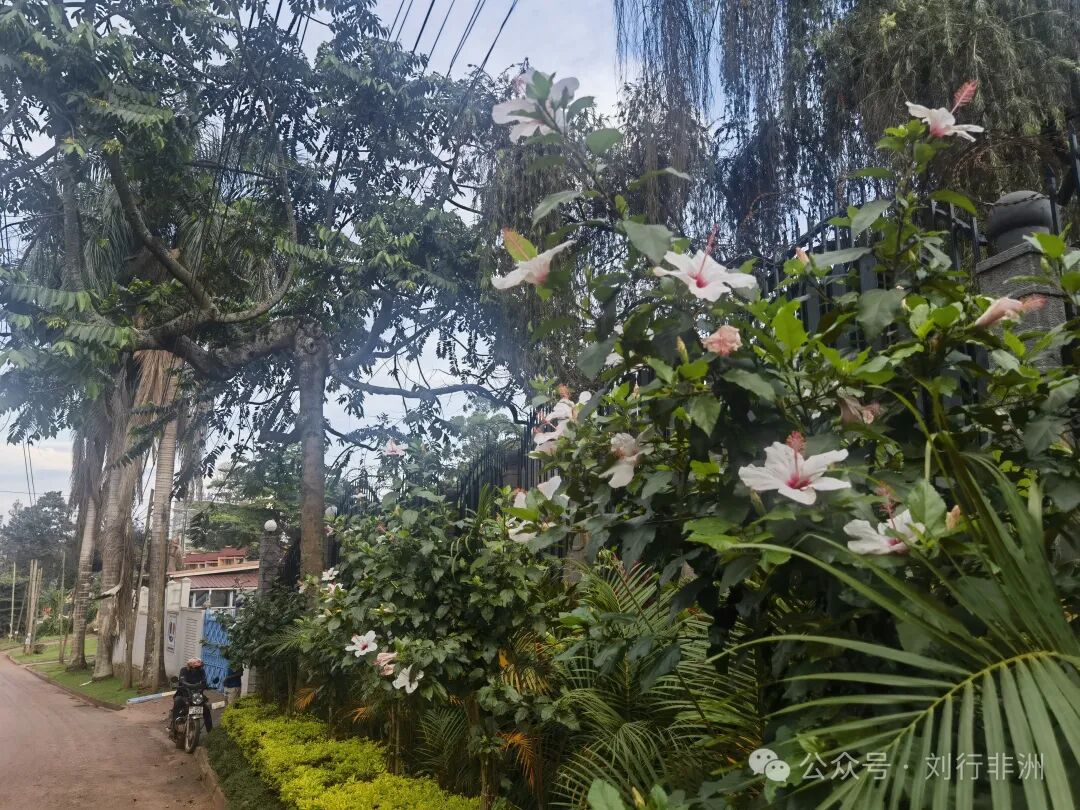 这儿雨水好,花草茂盛。去年我在姆巴拉拉买过一盆植物,多刺的茎一根根错落向上,长着许多小的叶子,半米多高。我本想放在办公桌上,刚放上去就觉得它粗笨,浇水也不方便,一个月叶子就黄了。于是我把它放到室外去了,风吹雨淋,反而茂盛无比,连黄叶子都没有了。这会儿估计还在二楼墙角那儿呆着。