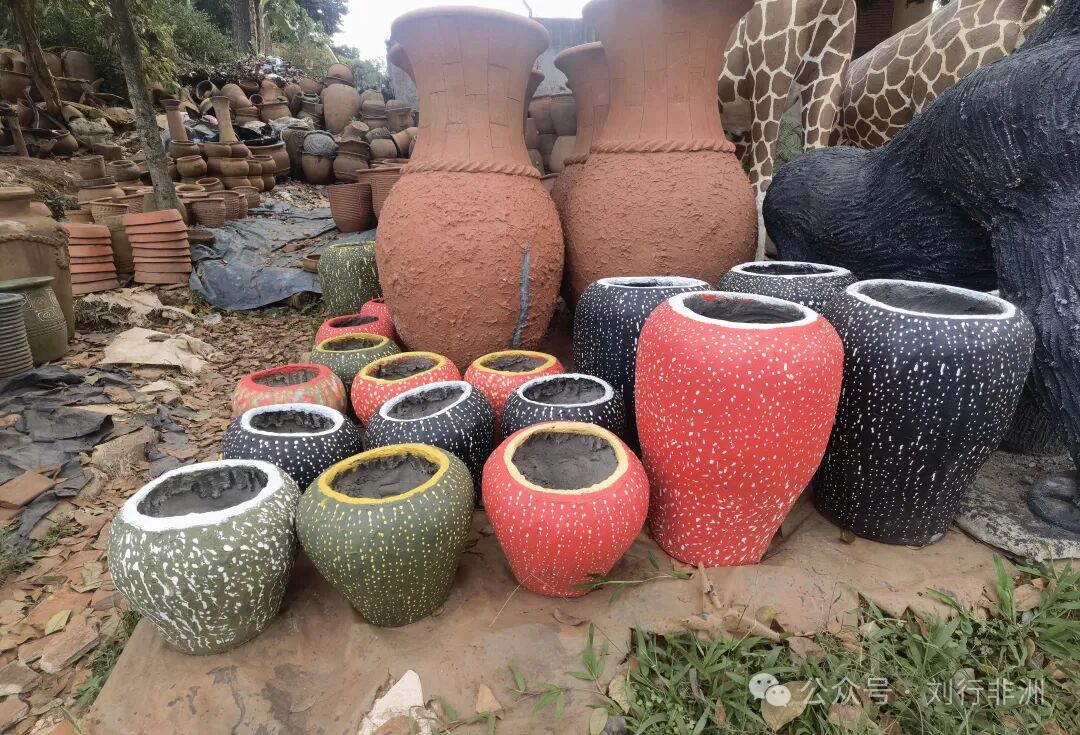 坎帕拉南京酒店对面有一片小坡,坡上是黑人烧造的瓶瓶罐罐,用色鲜艳,很有非洲特色。这大概是种养花草的器皿,也许并不是。瓶瓶罐罐非得种花草吗?也不必。