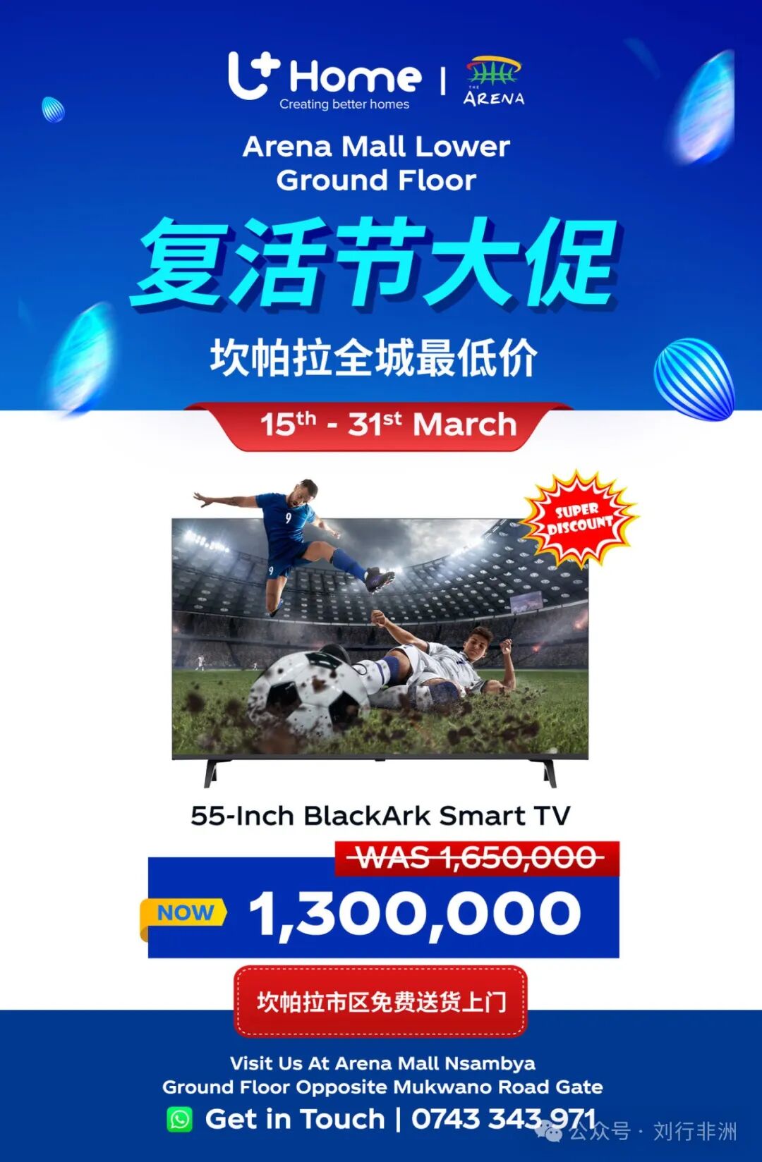 55英寸电视,干到2600人民币。这个价格力度之大,电视工厂的老板都是哭着来给我送货的。在坎帕拉开宾馆的老板跟我打电话问价格,听了都哭了。他刚买了十几台180万的55吋电视。