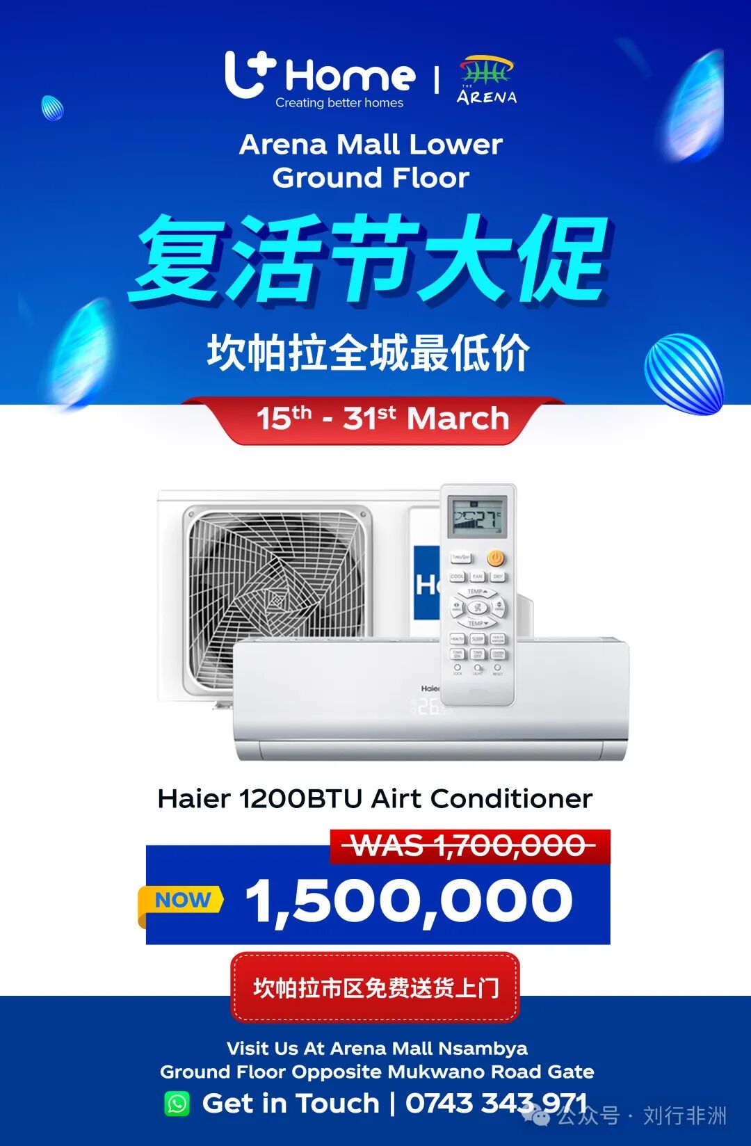 所以说,在坎帕拉买空调,直接找我就好。送货半日达,最迟第二天装完,装完再付款。这个服务超过了国内的服务水准。