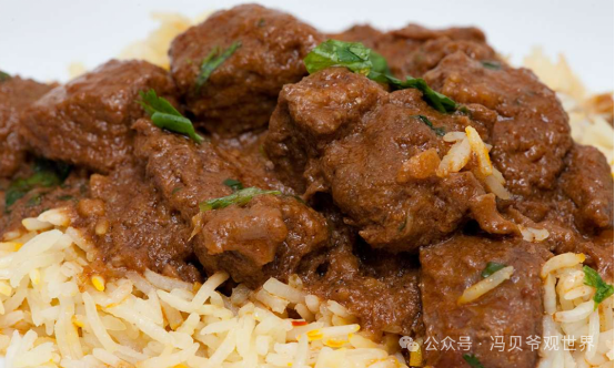 2.萨 拉:全面裹粉的咖喱羊肉饭,口感松软滑嫩。