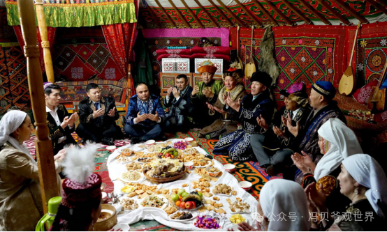 旅行的最后一晚,你被邀请参加一场哈萨克族长的传统庆功宴。面包、奶酪和肉食争先恐后出现在你面前,