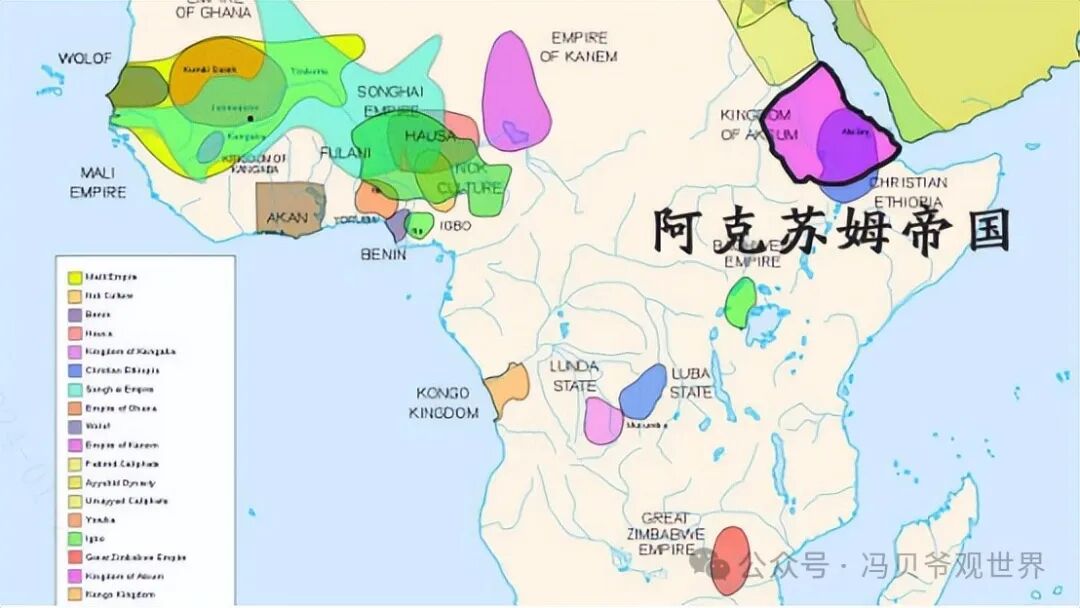 1.阿克苏姆王国时期:公元前后,阿克苏姆王国建立,成为非洲最古老的国家之一。阿克苏姆王国与罗马帝国有着广泛的贸易关系,成为了非洲东北部的经济中心。公元4至5世纪,阿克苏姆的皇帝们开始信奉基督教,在政治上和宗教上逐渐与东罗马帝国控制下的埃及和努比亚结合在一起。