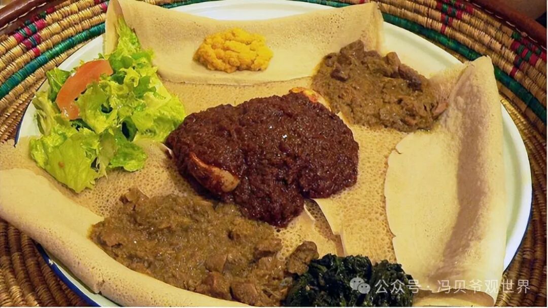 埃塞俄比亚的传统美食是一种叫做“英杰拉饼和许多称为沃特”的食物,它是由各种蔬菜、辣椒和肉类制成的一道色香味俱佳的炖菜。这道菜既有浓郁的非洲风味,又能让您享受到埃塞俄比亚色彩丰富多样的食物文化。