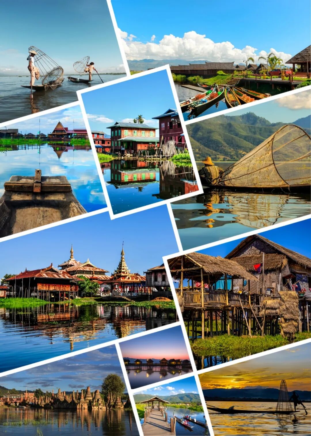缅甸的象征性湖泊,湖水清澈,周围群山环绕,是观赏水上人家的绝佳地点。