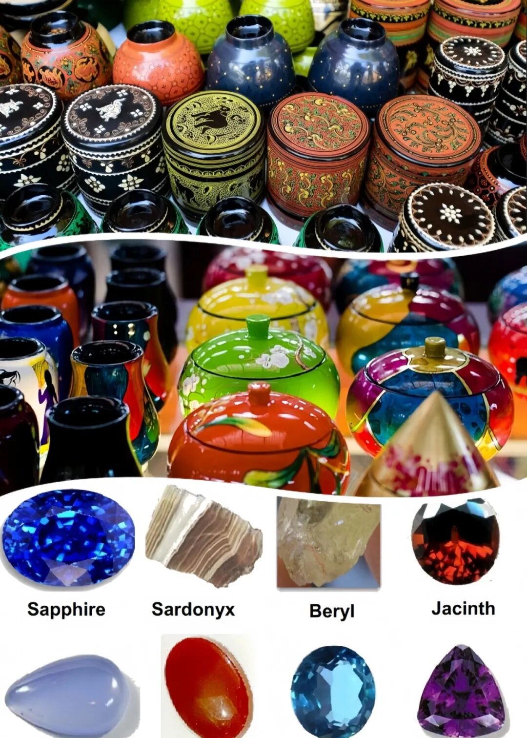 手工艺品、宝石和漆器都是当地特产。