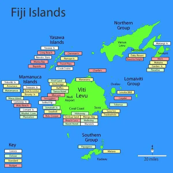 - 纳迪和苏瓦(Suva)周边有多家国际品牌酒店、度假村以及经济型住宿供选择。