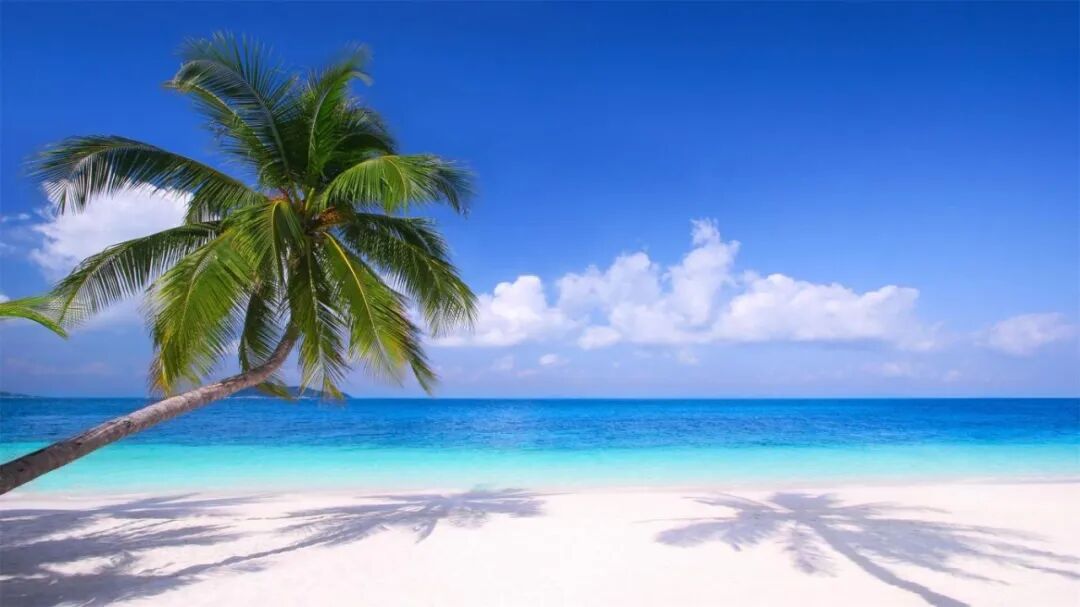 细软洁白的沙滩搭配上湛蓝的海水,