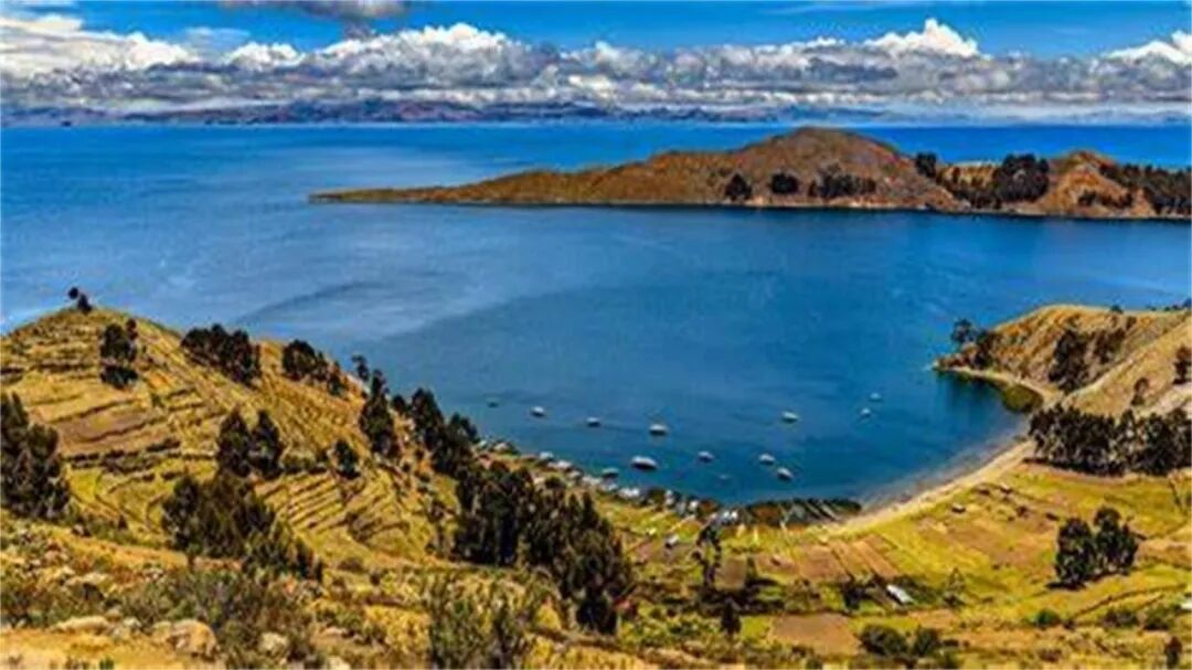 世界海拔最高的可通航湖泊,湖水清澈如镜,周围环绕着壮丽的山脉,就像一颗璀璨的明珠。