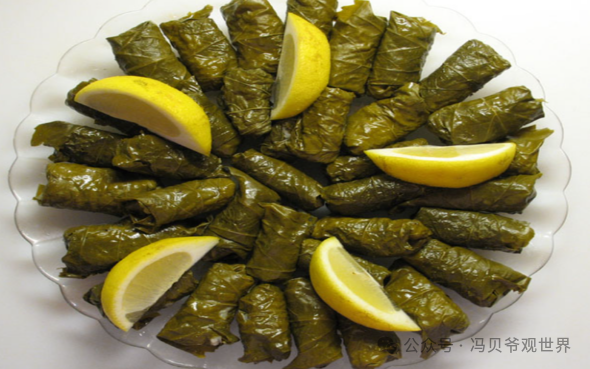 6.黎巴嫩葡萄叶卷:黎巴嫩葡萄叶卷是一种用葡萄叶包裹著米饭、肉类和蔬菜的菜餚,味道鲜美,營養豐富,是黎巴嫩人餐桌上常见的美味佳餚。
