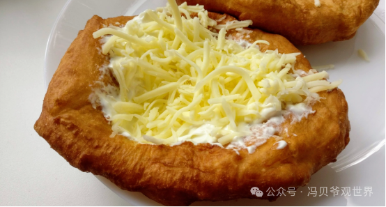 3.兰戈斯:是匈牙利的一道传统菜肴,做法是将由面粉、酵母、盐水制作而成的面包油炸使用。