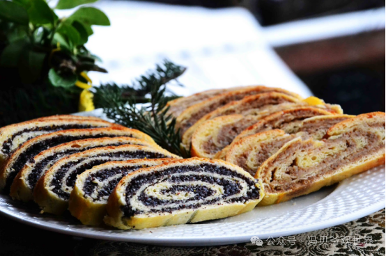4.罂粟面包卷:是一种在中欧和东欧地区流行的食物,主要在圣诞节和复活节期间食用。罂粟面包卷的做法是在面包卷中填入罂粟的种子和切碎的核桃糊。在匈牙利,圣诞节期间食用的糕点并不多,罂粟面包卷是匈牙利具代表性的圣诞节甜点。