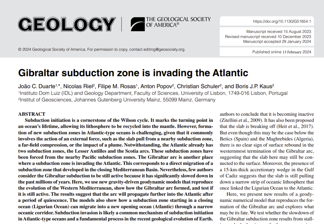 参考文献:“Gibraltar subduction zone is invading the Atlantic” by João C. Duarte, Nicolas Riel, Filipe M. Rosas, Anton Popov, Christian Schuler and Boris J.P. Kaus, 13 February 2024, Geology.