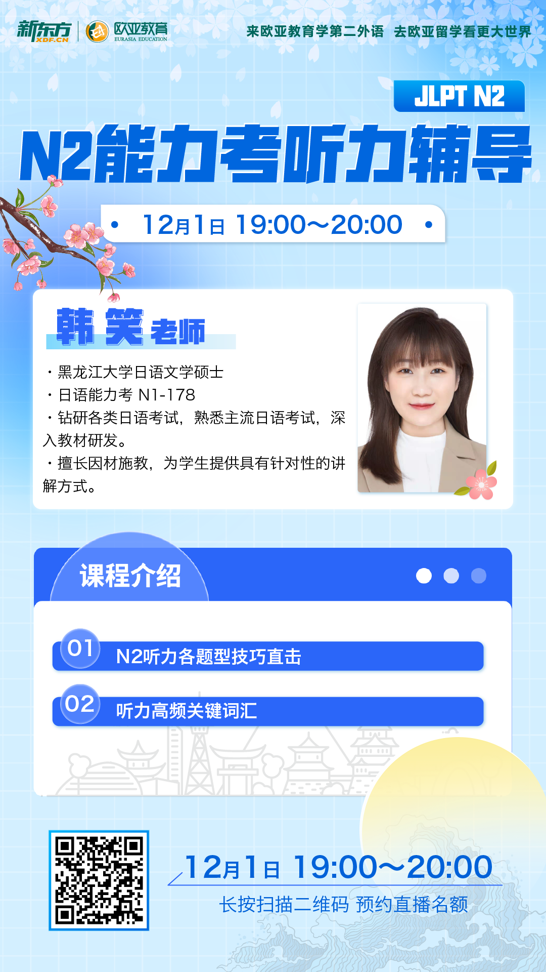 12月1日,本周四 19:00-20:00新东方总部日语老师 韩笑