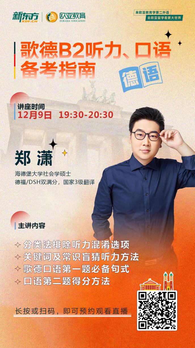 12月9日,本周五19:30-20:30 北京新东方德语老师 郑潇