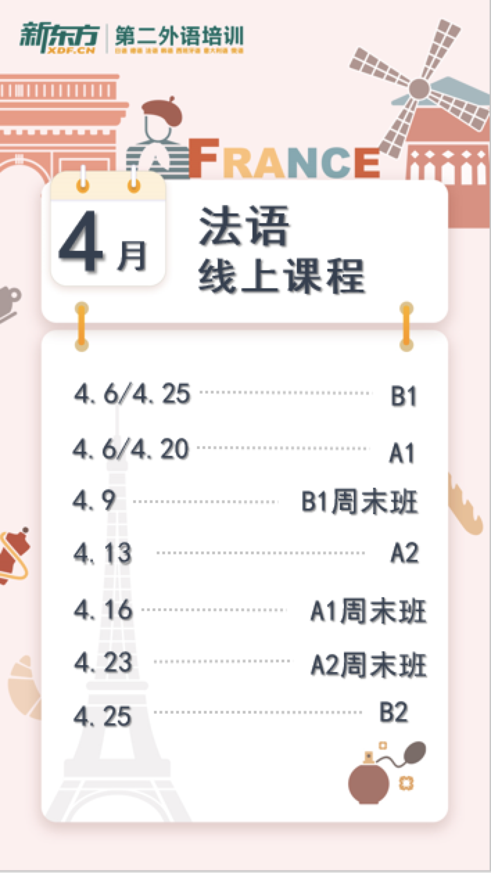 海报篇幅有限,更多4月法语课程,下方咨询。