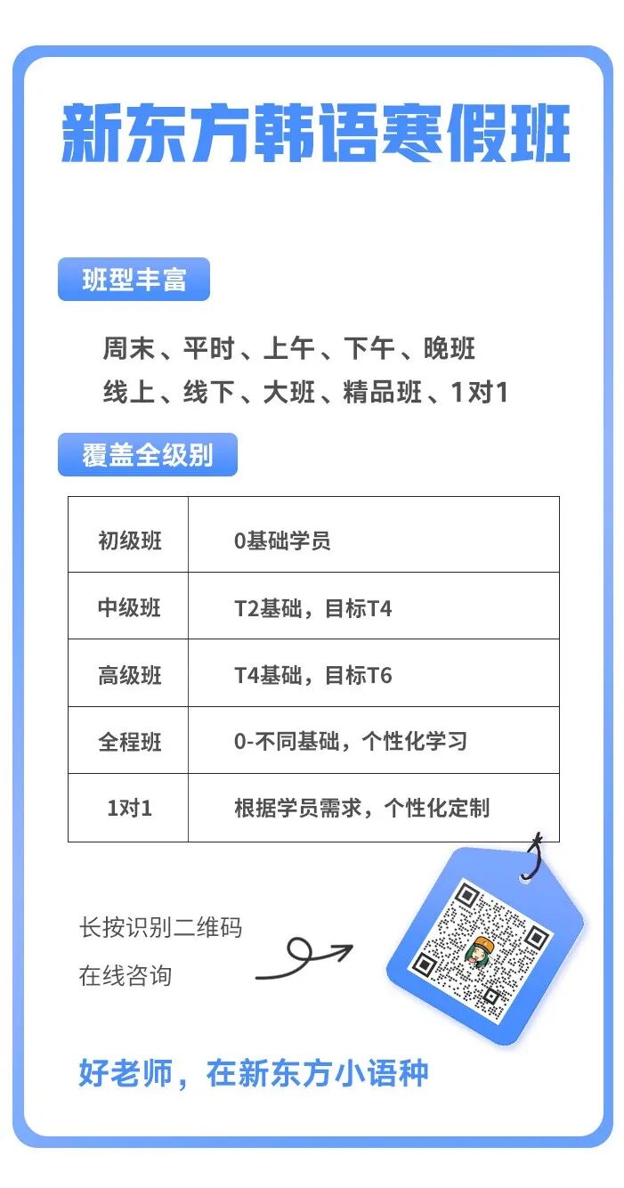 篇幅有限,更多11月韩语初级、中级、高级、在线课、面授班,扫描下方二维码在线咨询。