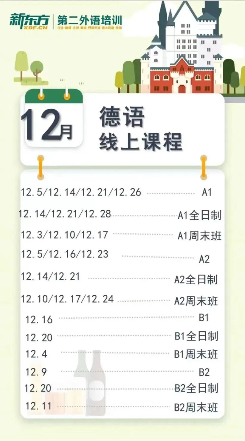 篇幅有限,更多12月德语初级、中级、高级、在线课、面授班,扫描下方二维码在线咨询。