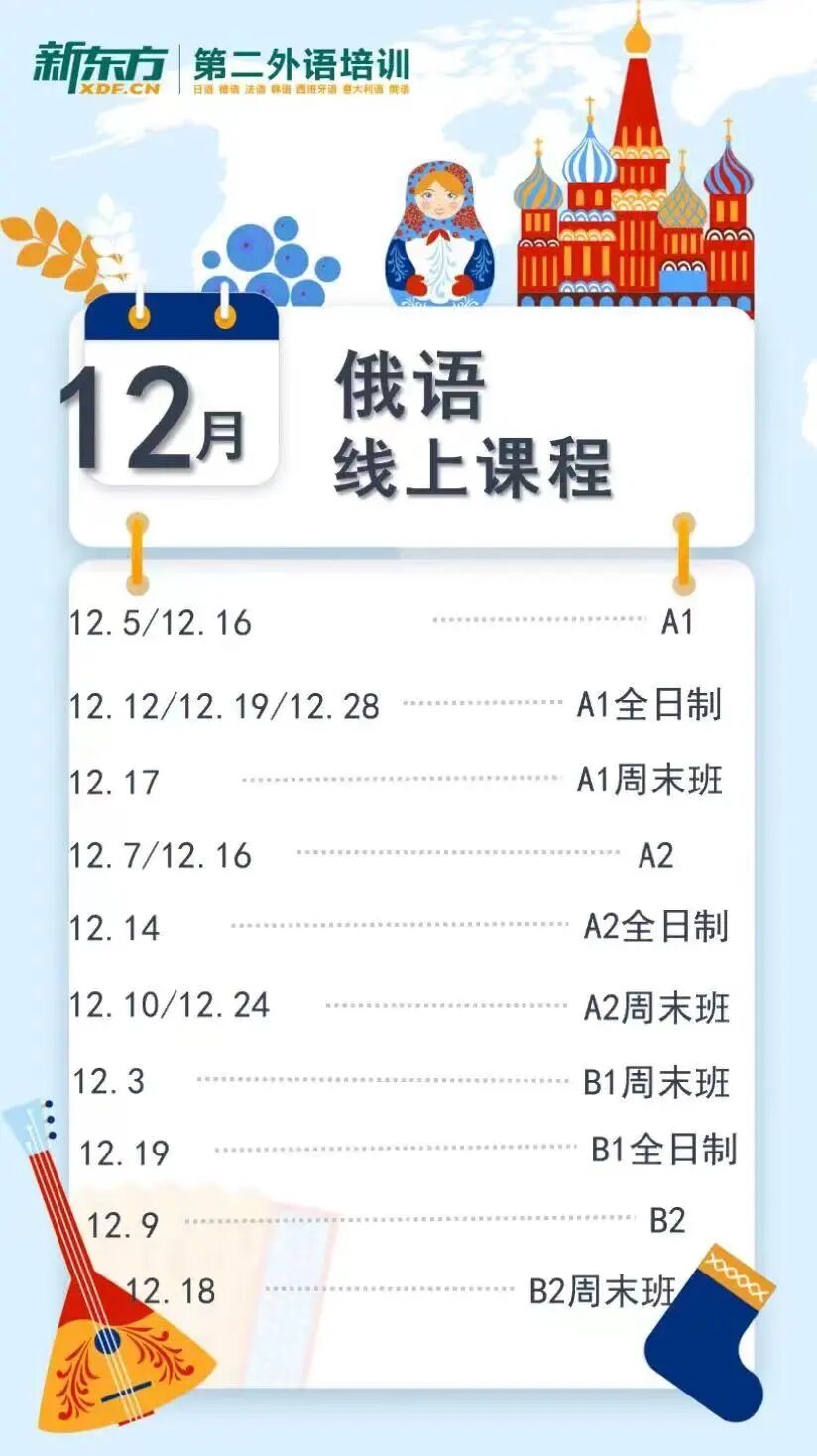 篇幅有限,更多12月俄语初级、中级、高级;在线课、面授班,扫描下方二维码在线咨询。