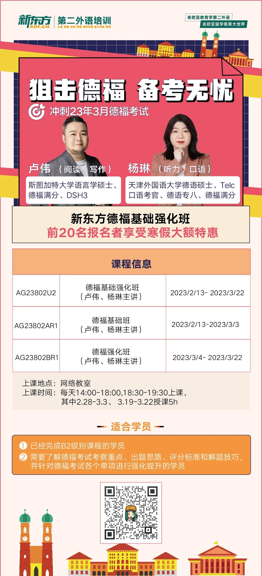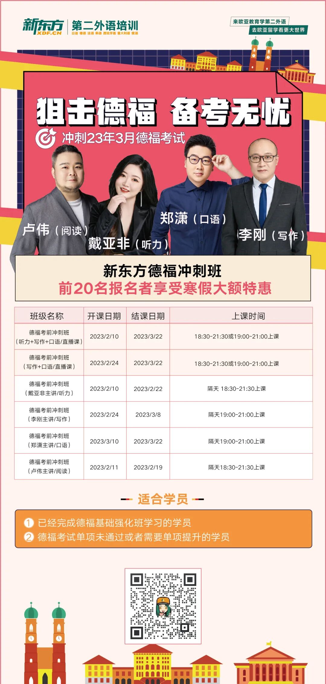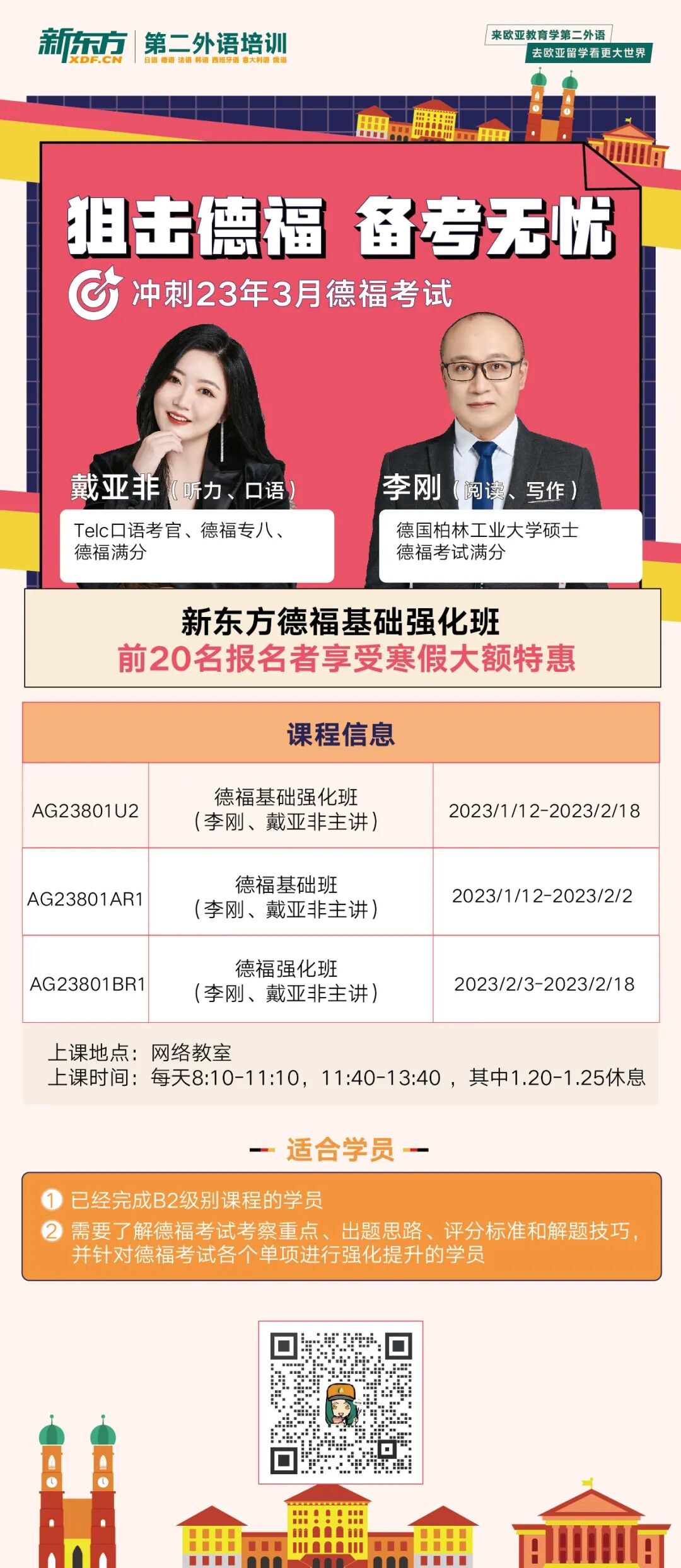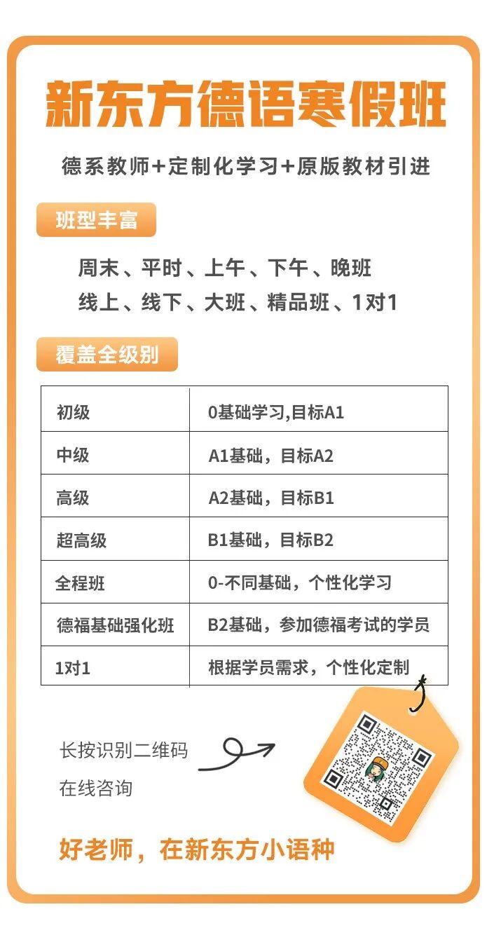 篇幅有限,更多12月德语初级、中级、高级、在线课、面授班,扫描下方二维码在线咨询。