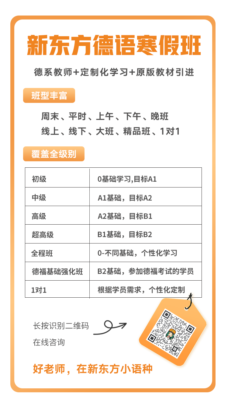 篇幅有限,更多12月德语初级、中级、高级、在线课、面授班,扫描下方二维码在线咨询。