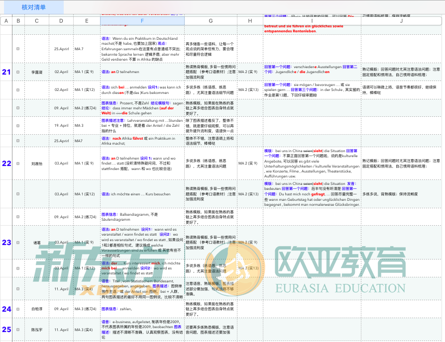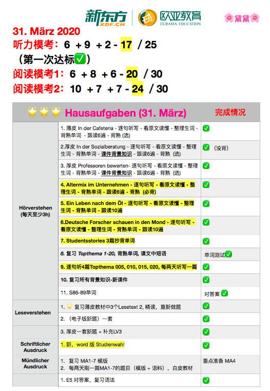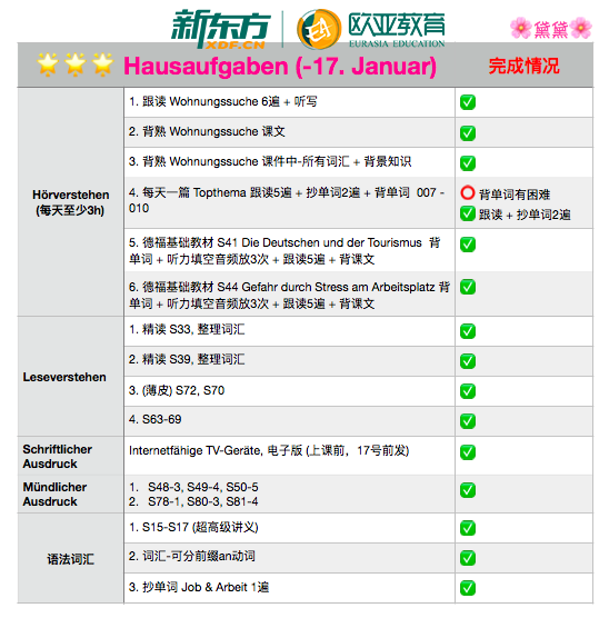 学习归根到底是靠自己,但我们会不留余力的帮助每一位同学,我们的考试目标是听说读写总成绩达到16~20分,终极目标为理解德国大学的课堂内容,掌握阅读长篇科技文献能力和记录、写作及演讲能力。