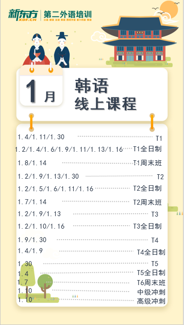 篇幅有限,更多1月韩语初级、中级、高级、在线班、面授班课程排期明细,扫描下方二维码在线咨询。