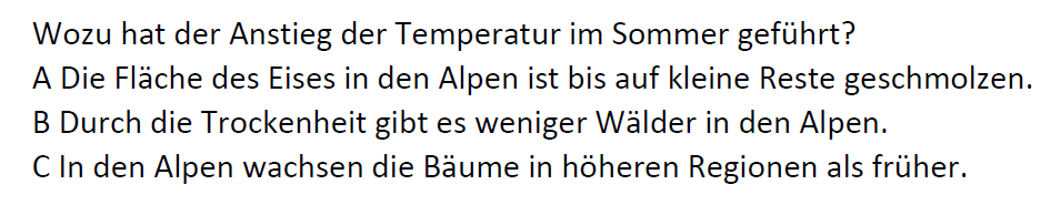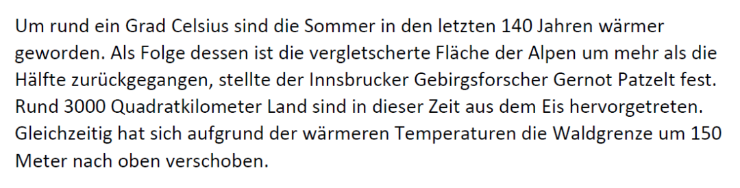 2. 题目中问 führen zu 导致什么结果,所以我们会在课堂上讲到如果在题目中看到 führen zu,那么强调的就是最终结果,对应文中最终结果就是“森林线向上推移”(die Waldgrenze um 150 Meter nach oben verschoben) ,这是我们在基础班会强调的所谓的“答题技巧”。