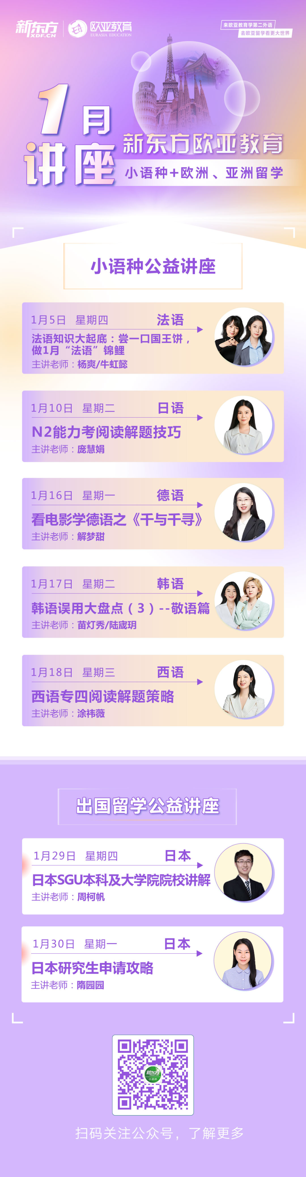 新东方1月小语种公益讲座排期来啦