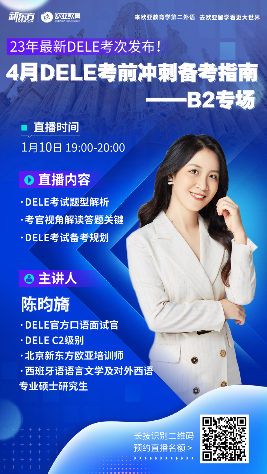 今晚 19:00-20:00 北京新东方西语老师 陈昀旖