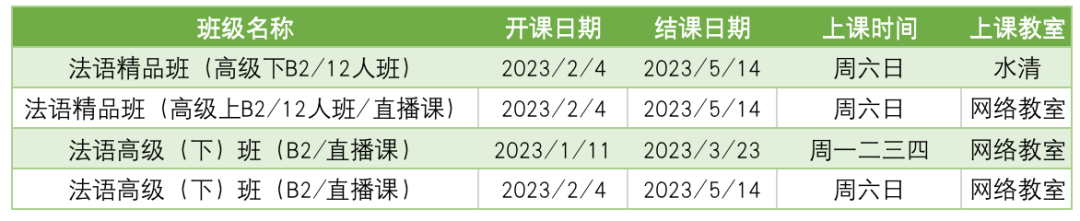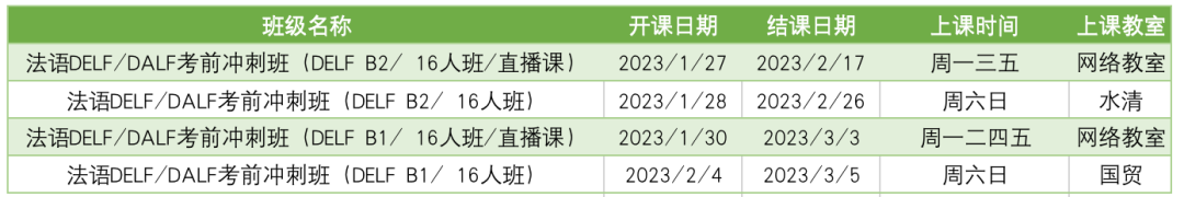 更多法语B2课程排期及优惠