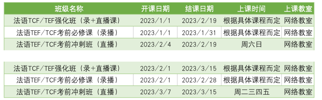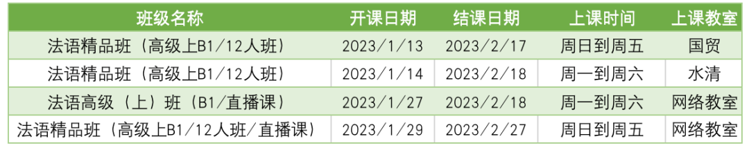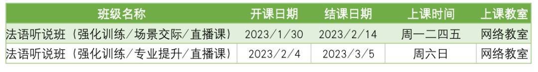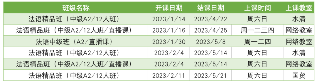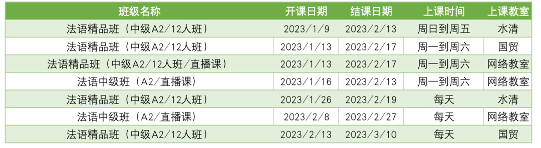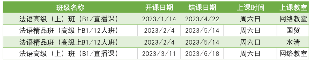 更多法语课程排期及优惠