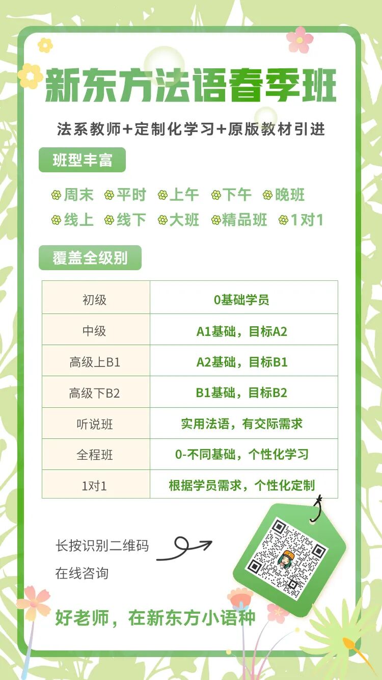 篇幅有限,更多2月法语初级、中级、高级、在线课、面授班,扫描下方二维码在线咨询。