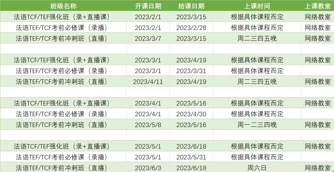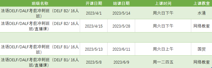 更多法语考试课程排期及优惠