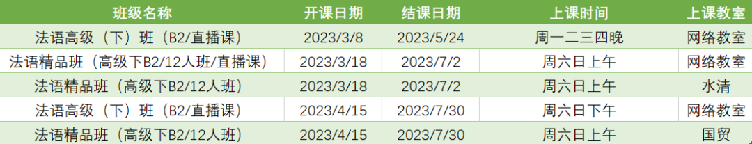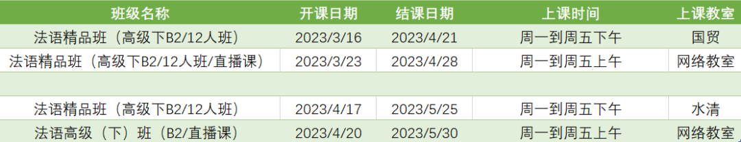 更多法语B2周末课程排期及优惠