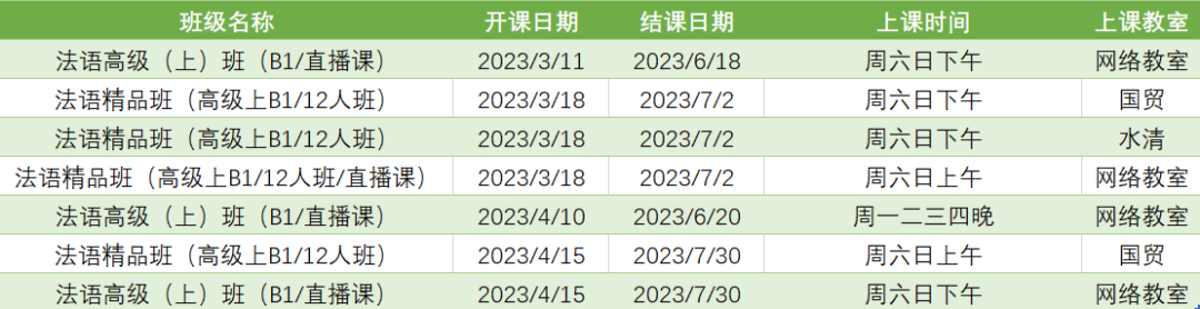 更多法语B1周末课程排期及优惠