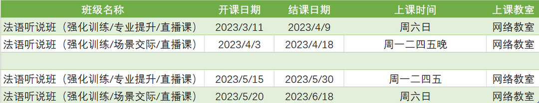 更多法语听说课程排期及优惠