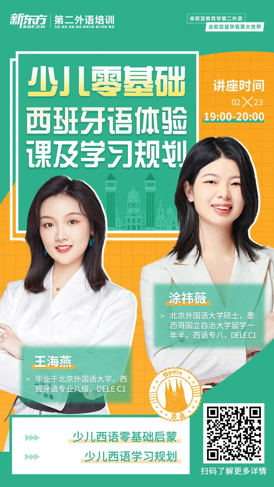 今晚19:00,新东方小语种【少儿零基础西班牙语体验课及学习规划】直播课正是为此而来。