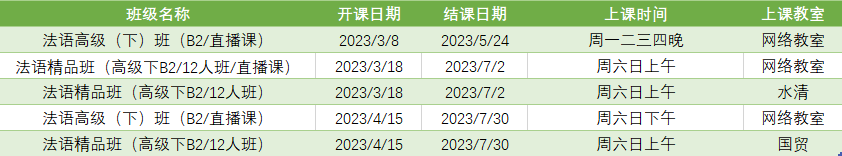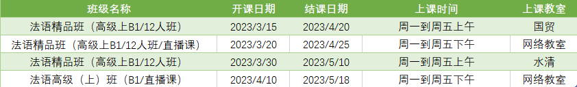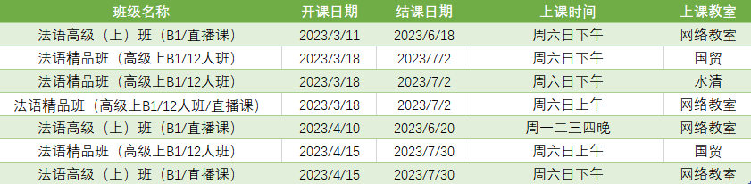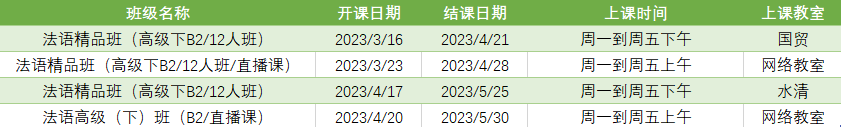 更多法语B2课程排期及优惠