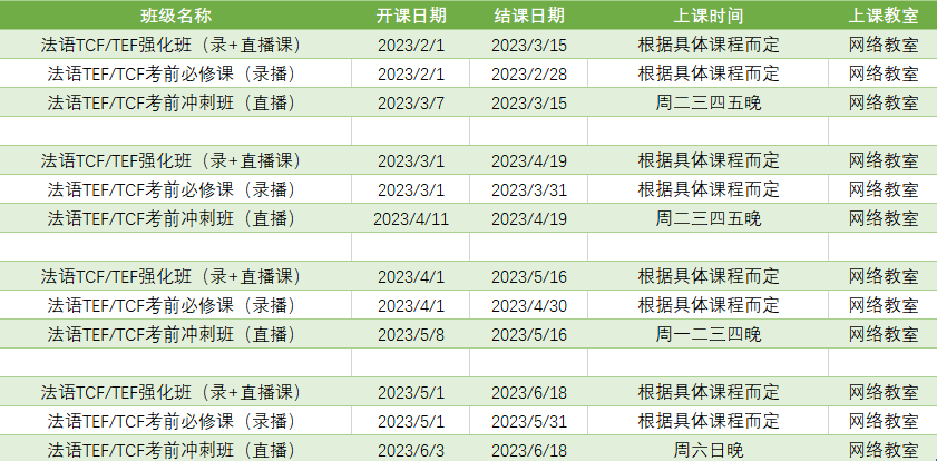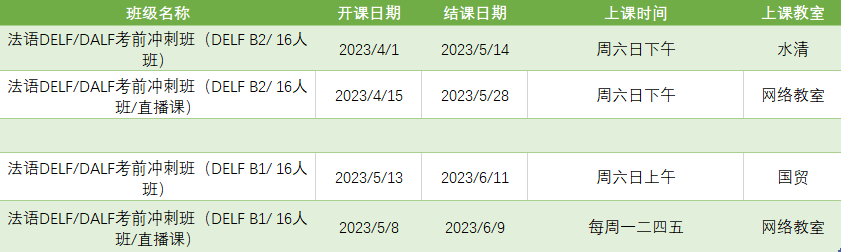 更多法语考试课程排期及优惠