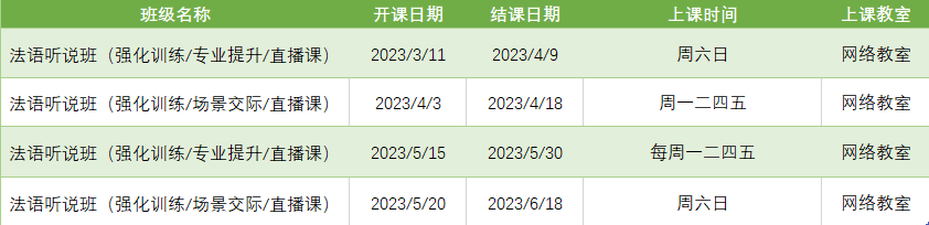 更多法语听说课程排期及优惠