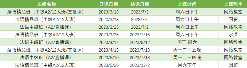 更多法语A2课程排期及优惠
