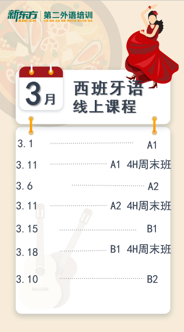 篇幅有限,更多3月西班牙语初级、中级、高级、在线课、面授班,扫描下方二维码在线咨询。