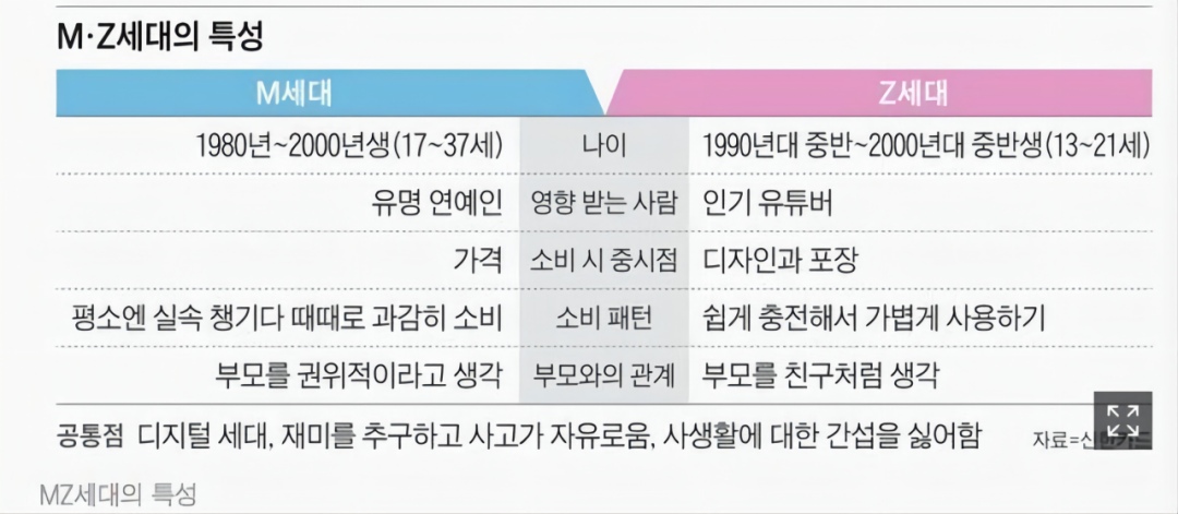 韩国也经常讨论这样的话题,韩语中把当今这些具有典型时代特征的年轻人称为“MZ세대” 。