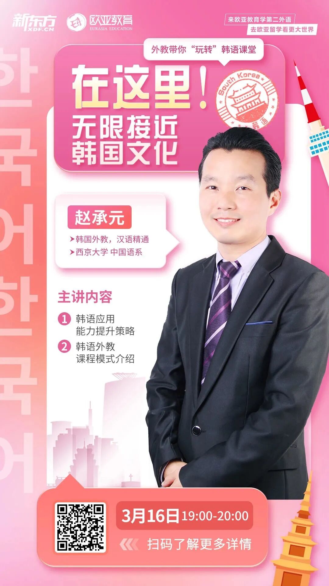 今年,新东方小语种总部也迎来了一位韩国外教,今晚19:00-20:00,他将与大家见面!
