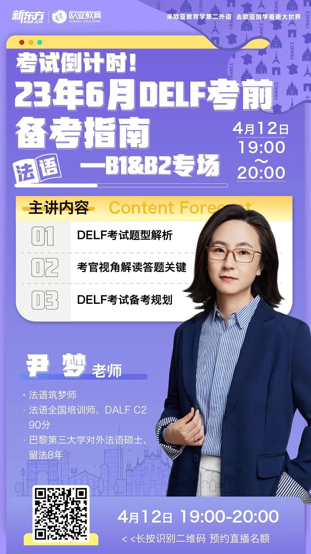 新东方【考试倒计时!23年6月DELF考前备考指南—B1&B2专场】直播课来袭