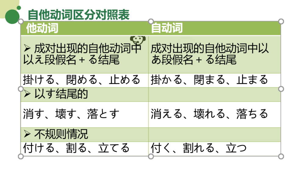 现在大家对自他动词的含义有一定的认识了吧,那么成对出现的自他动词要怎样区分呢?这里总结了两条重要规律。(除此之外需要特殊记忆)