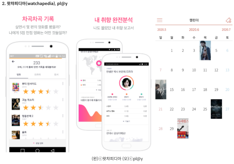OTT平台"Watcha"提供的"Watchapedia"可以对自己所看到和阅读的东西打分,并收集其评分类型。如果有人拜托推荐内容的话,可以什么都不用想,直接在app上就能确认。