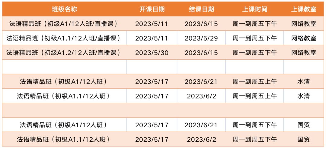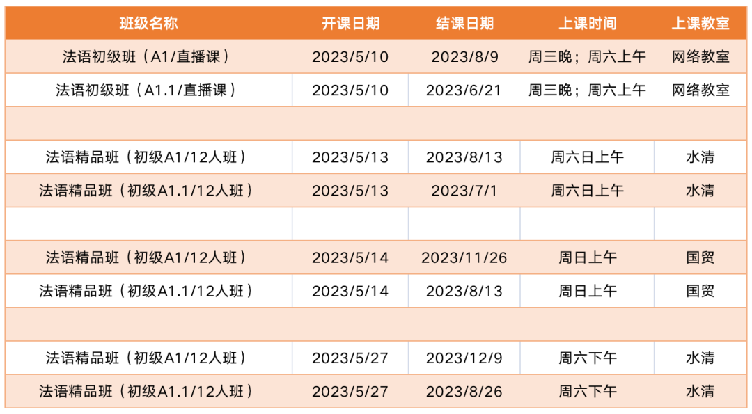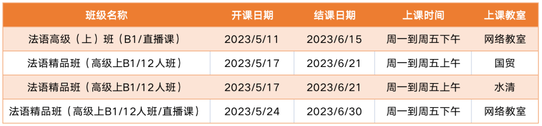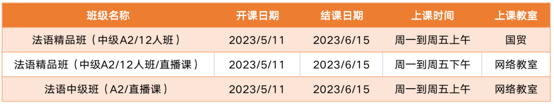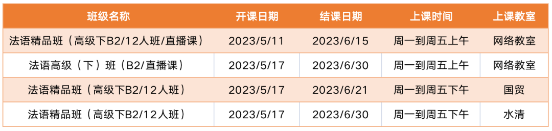 五月准备学法语的同学,快来查课表,把适合自己的课程记在小本本上,然后美美地放个假,假期过后第一时间冲到新东方小语种报名学习!