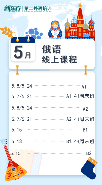 篇幅有限,更多5月俄语初级、中级、高级;在线课、面授班,扫描下方二维码在线咨询。